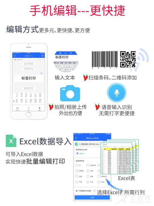 多元化内容编辑,轻松满足各种复杂的打印需求。同时支持多种输入模式:手动输入、语音输入、添加条码、二维码,拍照识别,Excel表格导入等多种内容输入模式,轻松实现批量打印。