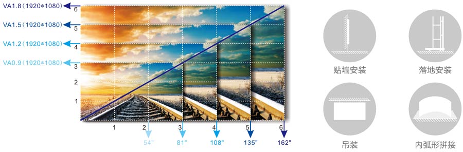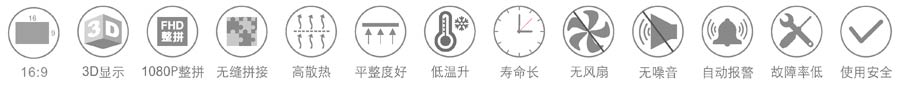 ○ 标准比例:16:9箱体,自由拼接16:9标准尺寸大屏,完美匹配主流标准视频源;