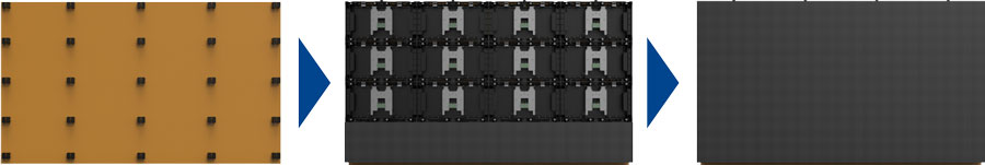 ○ 箱体间无线连接,屏体无外露线材,内部走线可使得信号、电力传输更加稳定,同时整拼美观整洁。