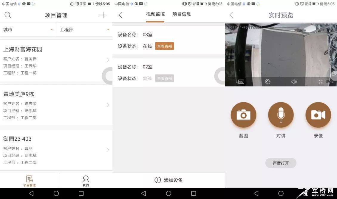 金螳螂*品宅APP携手乐橙云开放平台打造透明家装,实现了查看工地现场施工情况、工程项目统计、收款统计、异常管控、进度追踪、客资管理等功能。