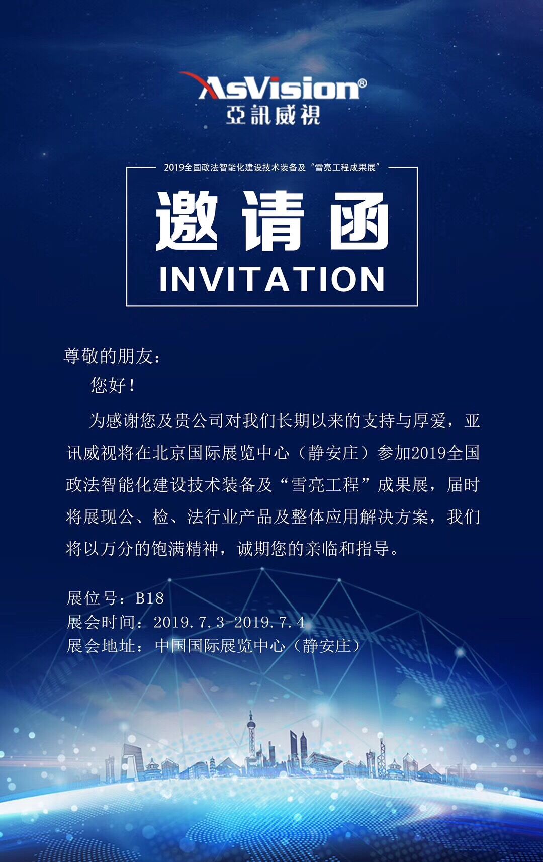 亚讯威视诚邀您参观2019全国政法智能化建设技术装备成果展