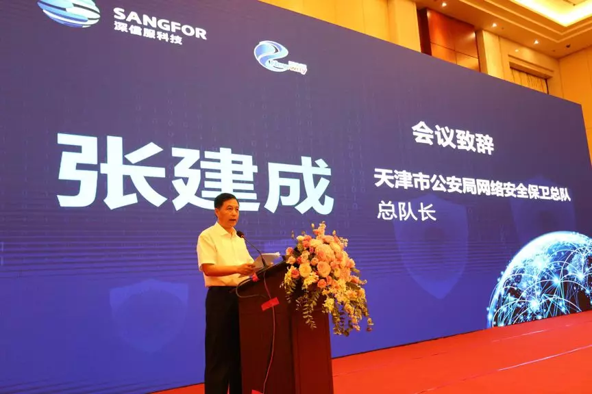 天津市公安局网安总队张建成总队长首先为本次会议进行了致辞,在致辞中充分肯定了天津市近年来在网络安全等级保护工作中取得的优异成绩,并客观指出了当前网络安全等级保护工作面临的严峻挑战,为下一步天津市等级保护2.0的宣贯和落实提出了指导意见和具体要求。