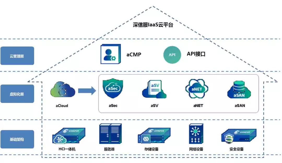 ▲基于混合云aCMP的深信服IaaS虚拟化产品架构