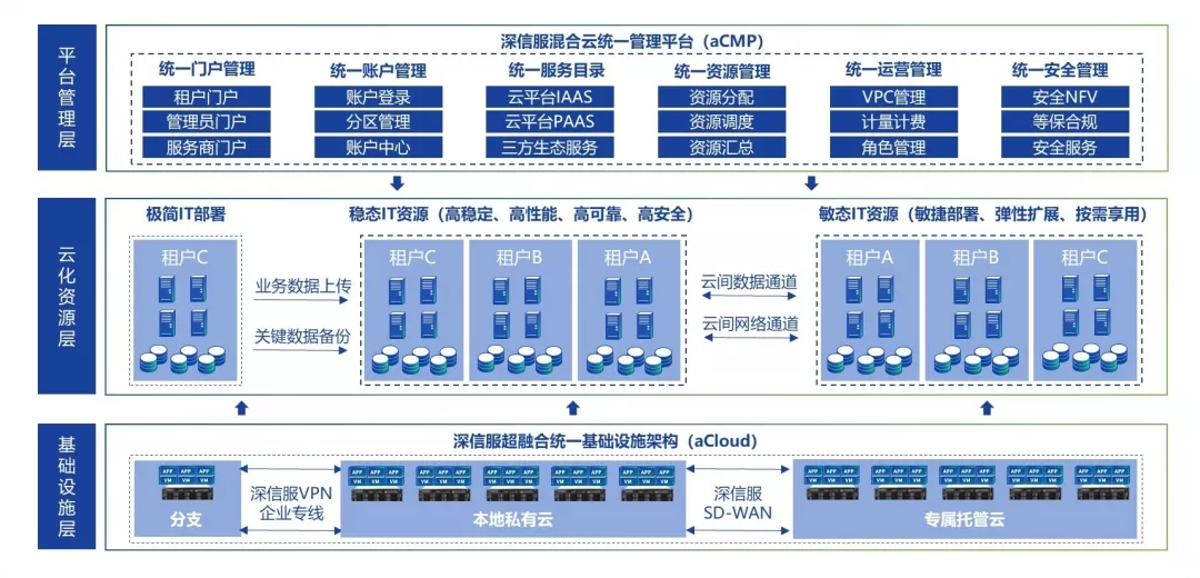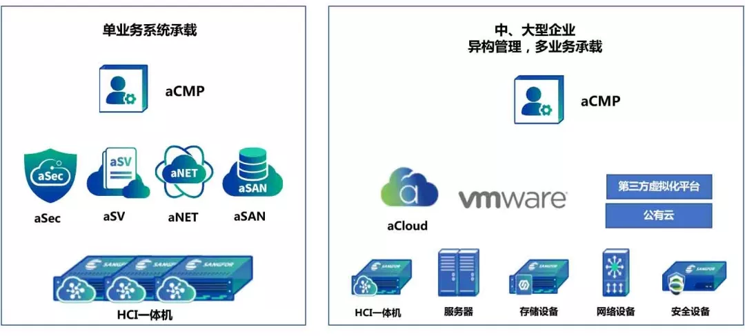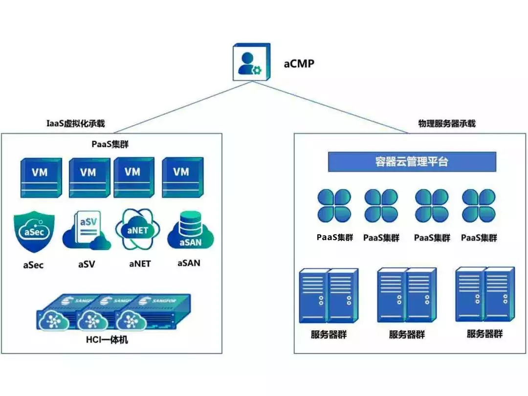 含SDDC(产品化交付aCloud)、私有云(产品化交付aCMP+aCloud)。