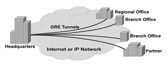 • GRE over IPSec隧道:提供在总部和分支之间传送广播、组播的业务,广泛适用于企业总部与分支机构间使用视频会议或动态路由协议消息等场景。