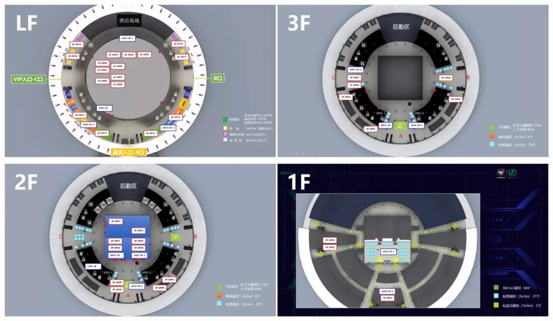 会场很大,楼层很多,而且场景相对复杂。所以在网络规划阶段,我们提前与各业务方沟通需求,并规划梳理了详细齐全的文档资料,不放过每一处细节的确认。在给客户汇报网络规划方案时,客户甚至开玩笑说我写了一本论文出来。但他看完,认为非常清晰、全面。