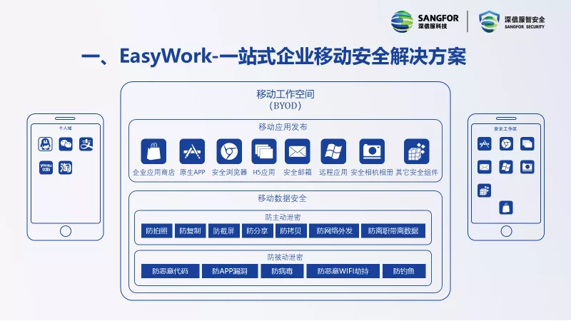 秉持“面向未来 有效保护”的安全理念,深信服一站式企业移动安全解决方案聚焦企业用户需求,助力企业现有业务的移动化,并支持未来业务的移动化创新,持续向用户提供更安全、更高效、更易用的移动办公方案。