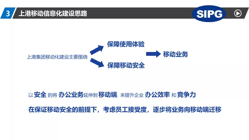在这种情况下,上港集团与泛微、深信服紧密沟通,制定了围绕移动业务,以保障用户体验和移动端安全的移动信息化建设思路。