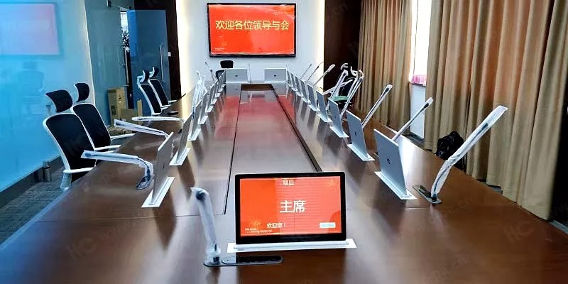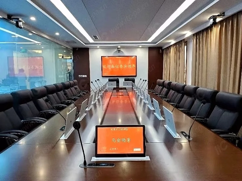 itc无纸化会议系统让整个会议全程无纸,根据会前、会中、会后清晰管理,屏幕统一升降,不占用桌面空间,高效智能。