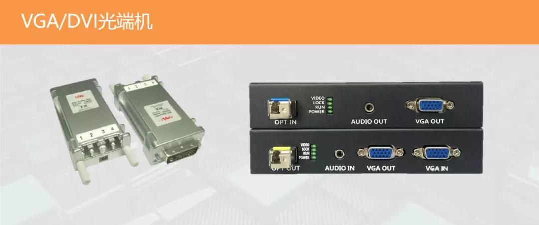 这种产品早期是VGA接口,后来又出了这种光口。现在展现的这些都是网上各种搜集来的图片,早期的,有这种单芯的,然后多芯的。像这种产品就可以传到100米、500米乃至1公里。慢慢的,传输设备由长线延长器、双绞线传输、光传输,一层层的往前发展。