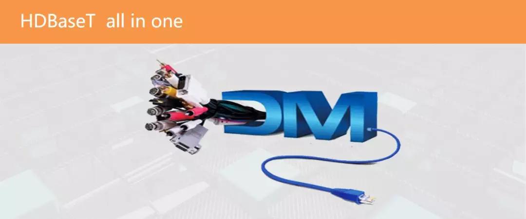 到了最近几年,HDBaseT便火热起来,明天也正好有HDBaseT的高峰会。这张图片应该是DMP的,一个HDBaseT国际代表厂商。我蛮喜欢他这张图的,就放在这里进行展示,它这个图表达的意思是我这个协议可以把过去各种各样的信号,最后用一根网线来传输,就是all in one的多合一。当然这是联盟推出一个概念,有了这个概念之后,便有效解决了传输问题。