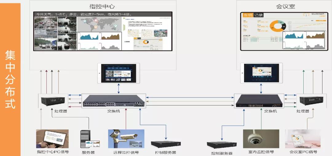 但同样也有一定的缺点,这种系统在指定区域做备份,是要有一定技术的。有些项目用户不采取这种方案,主要是这个原因。因为关键的场所,它有很多本地信号在,它要确保大屏,特别是在重要会议、演示环境里,绝对不会出问题,往往需要系统的备份,分布式做起来相对困难一点。同时在上屏显示这个环节,分布式的多屏幕同步性还有一定问题,很多客户是接受不了画面撕裂的。所以有些项目会主系统采用分布式,但在拼接上屏环节采用集中式,这是有它的客观原因。
