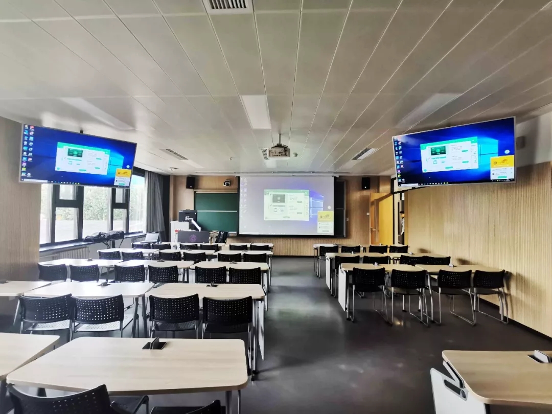 因此,在六月毕业季,学校用新型多媒体教室完成了研究生远程答辩;7月招生季,招生办在此进行自主招生面试。至9月开学季,36间教室全部投入使用,学生和老师可通过任意一间教室,与身处世界各地的学者、教授、学生进行远程互动交流,实现在线学习、远程互动交流、在线教学督导等应用。