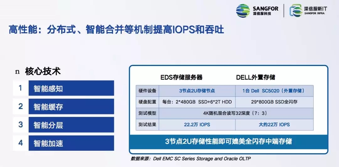 付忞表示,除了分布式数据库与分布式缓存,深信服EDS还通过IO路径优化、智能条带化技术来保障整个存储平台的高性能。