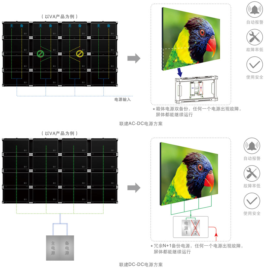 ◆ 双信号热备份,故障自动切换,确保画面稳定可靠