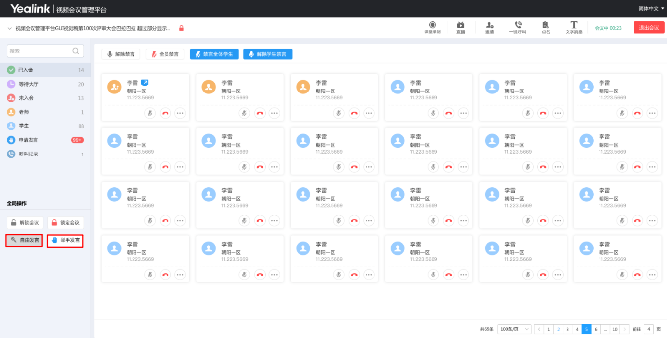 • 支持点对点会议/预约会议/即时会议/主席模式/讨论模式/授课模式多种会议召集方式及会议模式