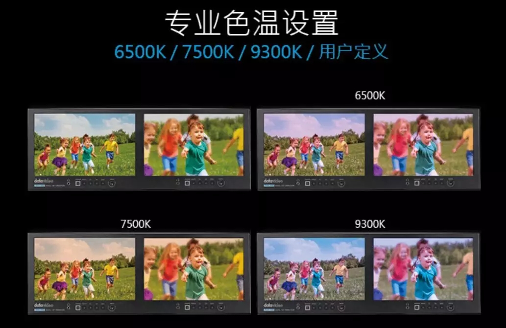TLM-102支持自定义显示色温包括:6500K/7500K/9300K/用户自定义等来配合现场操作环境,进行配色转换。如此一来,现场的灯光因素再也无法影响到用户对于色彩的判断,浓郁饱和或是清新淡雅直接呈现。两个双联的10寸的液晶屏幕通过细腻的显示屏幕,最高支持170°的水平及垂直视角,无论哪种角度,不缺失任何像素细节。前面板耳机插孔的设计,也可以让操作人员实时监听现场声音状况