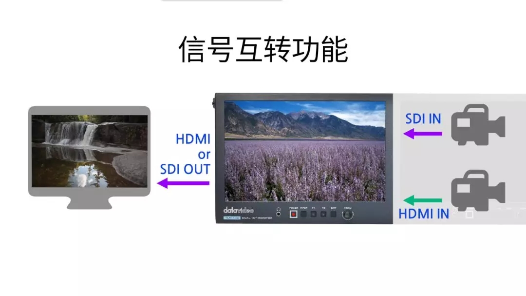 TLM-102还支持4RU机架式屏幕可调整角度 ,为现场监控,电视墙和导播车提供各种形式的安装,方便多角度监看。有具备SDI和HDMI信号交叉转换功能,即使双联监视器,也是信号转换器,真是功能多方面面俱到。