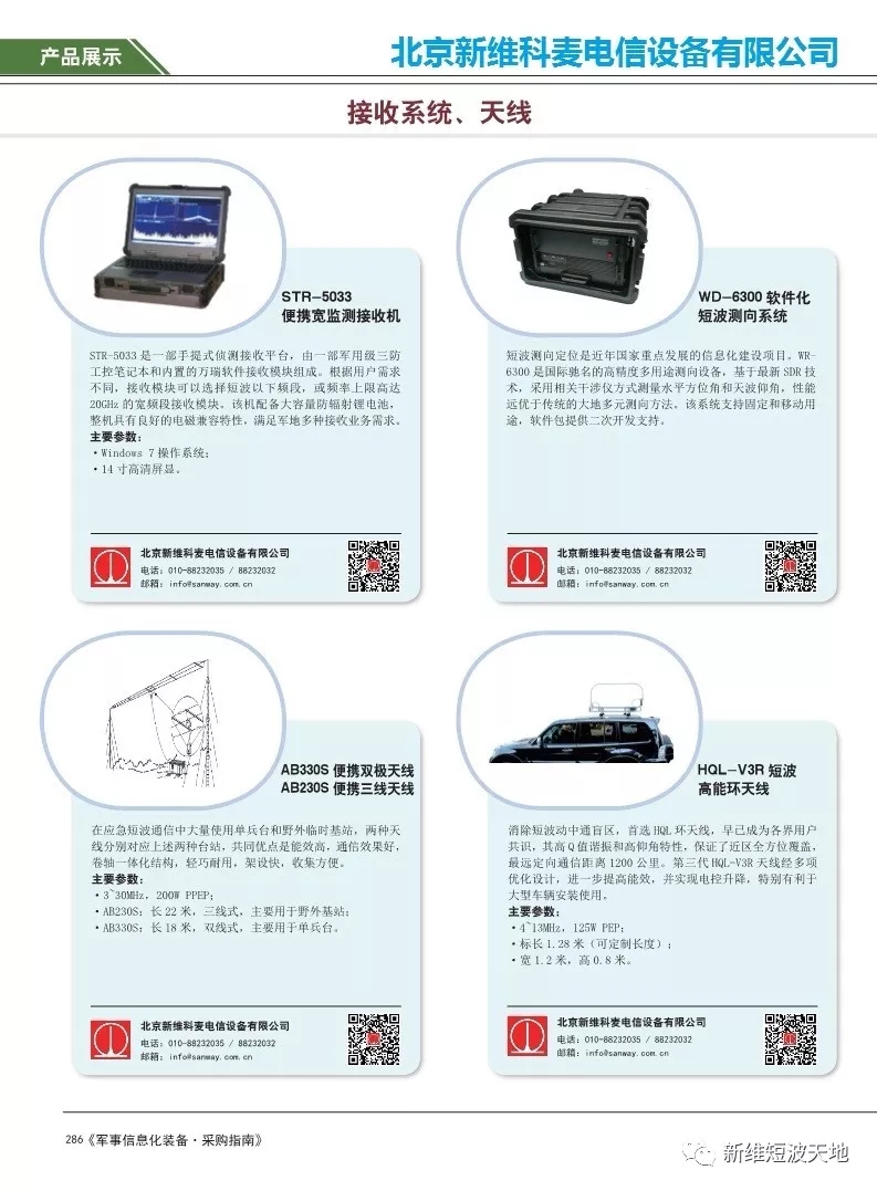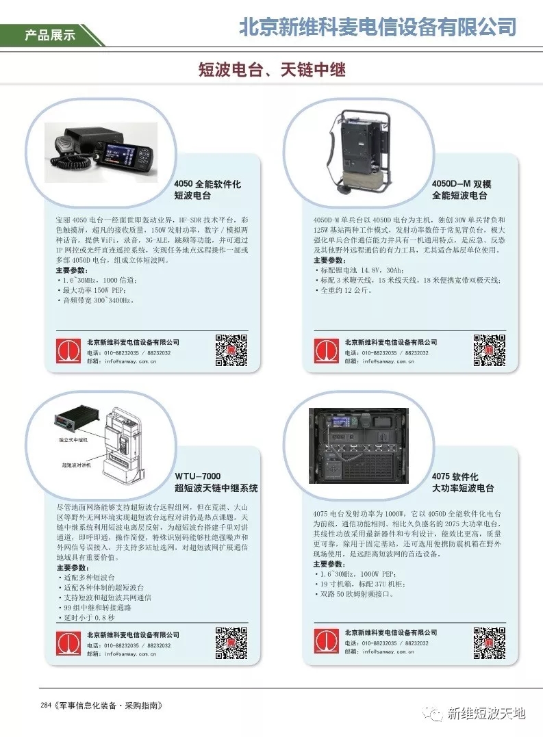 在短波通信领域,公司长期担任澳大利亚宝丽通信公司(世界军用短波和战术超短波设备主要制造商之一)的中国总代理商和技术服务中心。同时自研生产短波天链中继系统、双模单兵电台、广域专网遥控系统、电控高能谐振环天线、便携天线等独创产品,在应急、反恐、海上等领域广受好评。