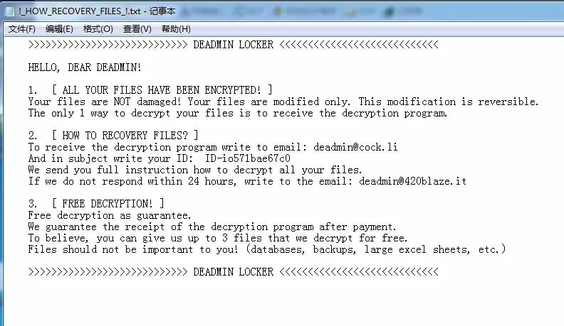 病毒名称:DEADMIN LOCKER