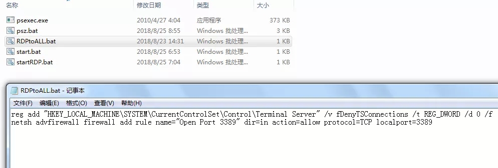 6、然后使用psexec上传脚本至目标主机并运行,开启RDP服务。