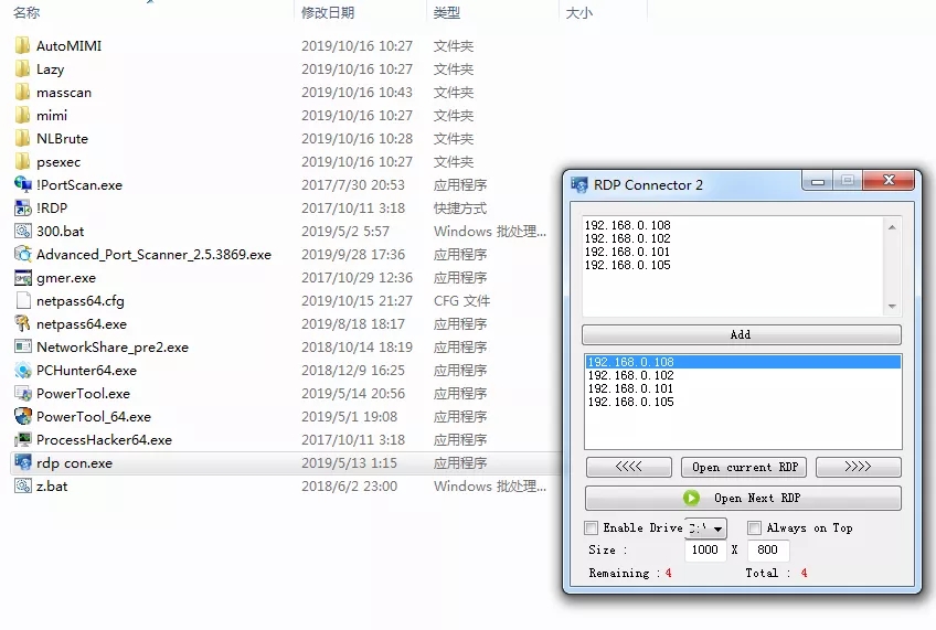7、获取到以上爆破成功的主机后,使用rdp_con工具进行批量连接。