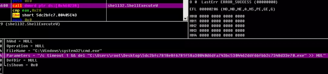 7、加密完成后进行自删除: