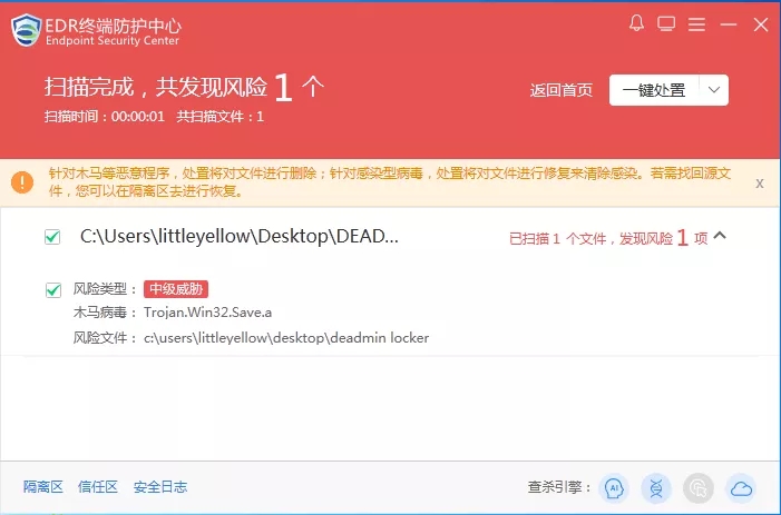 1、病毒检测查杀: