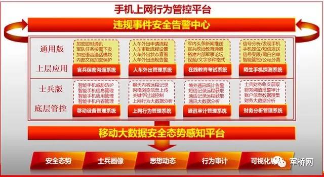 通过为官兵手机安装上网行为管理系统,对官兵的智能手机从购买、入网、日常使用以及退伍脱管的全流程实现移动设备的全生命周期的管控,过滤广大官兵在日常手机的使用中涉及到的具体细节,主要包括公共即时通信工具的聊天过滤、短信过滤、通话记录过滤以及手机网络过滤,屏蔽发送信息中涉军敏感关键词,警示GPS定位和摄像头开启等功能,堵塞失泄密渠道,有效隔绝负面有害信息,为官兵上网用网构建一道绿色“防火墙”。
