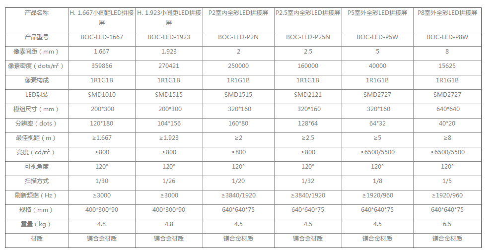 室内全彩屏H1.667/H1.923/P2/P2.5/p3/p4,室外全彩屏P5-P10可选,方便用户选择。