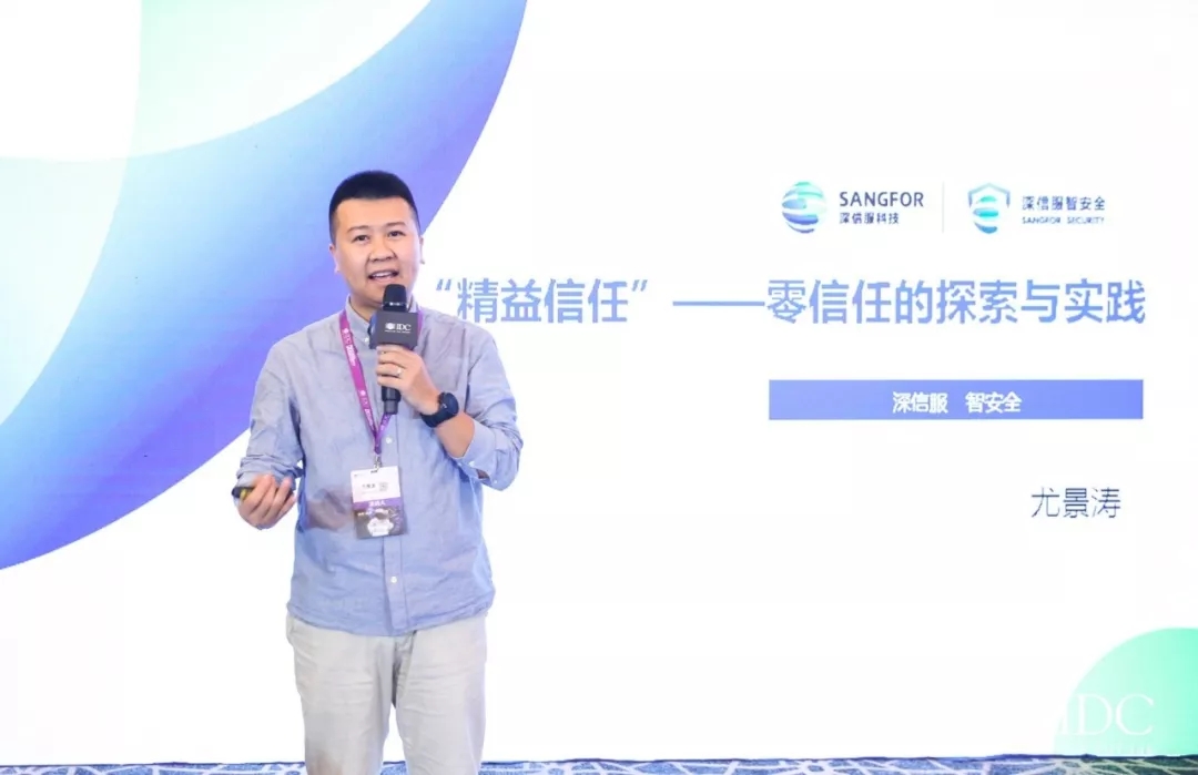 本次年度盛典,深信服安全业务解决方案高级总监尤景涛还受邀于“网络安全新技术与防御策略应用” 主题论坛发表《“精益信任”——零信任的探索与实践》的演讲,深入分享深信服精益信任aTrust安全架构通过自适应策略,结合按需扩展的功能组件,通过私有化、云化等多种部署方式,实现信任和风险的精益控制,帮助用户构建更匹配业务需求的安全架构,实现“面向未来,有效保护”的安全理念。
