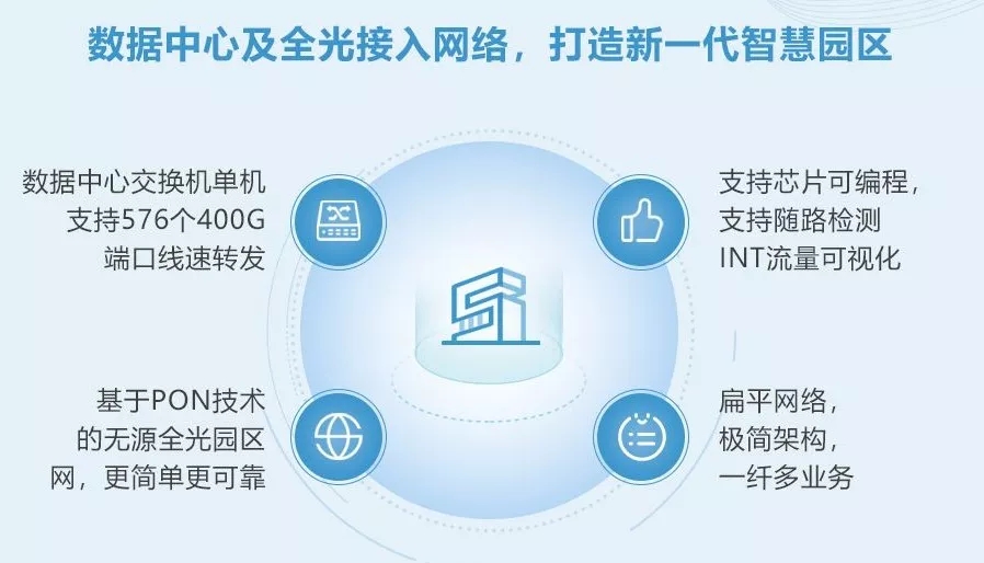 5G行业智慧园区可为行业用户打造真正高效、高性能、支持各种应用场景的园区网络,园区数据中心作为智慧园区信息服务的基础设施,将充当5G边缘云角色,承担园区内部的高带宽通信和边缘计算功能。在5G时代,园区有线网络将全面升级为全光接入,无线园区网络也会因为5G网络的覆盖,使得高带宽、大连接、低延迟的应用得到带动,而在一些PC办公、科研教学等5G终端未普及的应用场景,则需要新一代的WiFi6网络结合5G网络来实现园区内全场景的无线覆盖。
