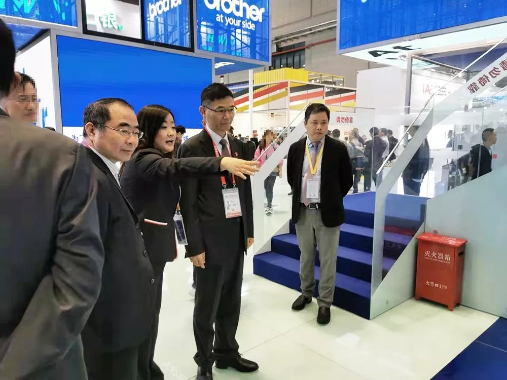 同样在今天,数位市政府、区政府的领导以及进博会组委会合作伙伴——东浩兰生集团的领导莅临3A4-005展台,参观了解了Brother此次带来的产品与解决方案。