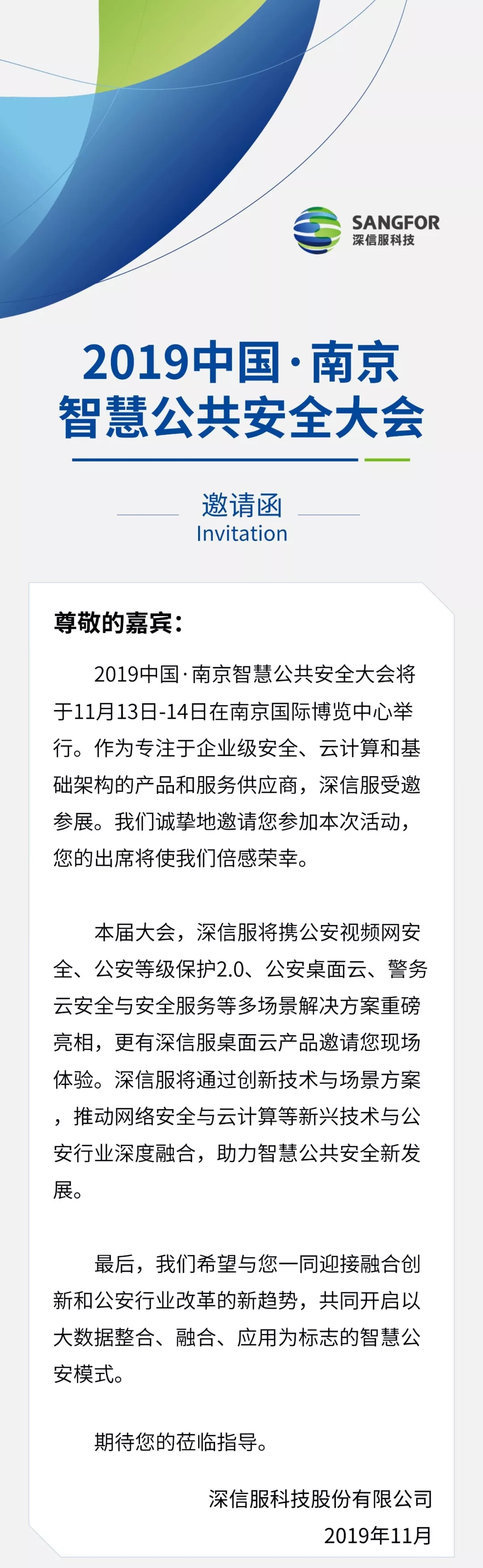 【邀请函】深信服诚邀您参加2019中国 · 南京智慧公共安全大会