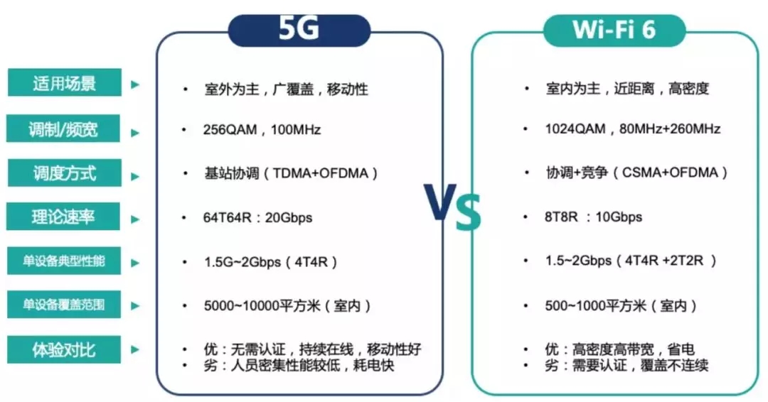 从覆盖性能和建设管理综合对比我们可以得出5G和Wi-Fi6有不同的适用场景:5G的场景以室外为主,考虑的是广覆盖、连续性和可移动性;Wi-Fi 6的场景以室内为主,考虑的是近距离、高密度覆盖、和高性能。
