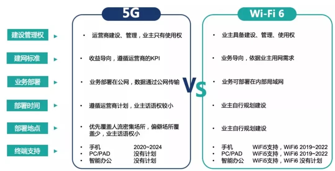 从网络建设的管理权来看,5G的建设和管理权都是运营商负责和主导,业主(高校)只能有使用权。而Wi-Fi则是私有网络,业主完全具备建设权、管理权和使用权。