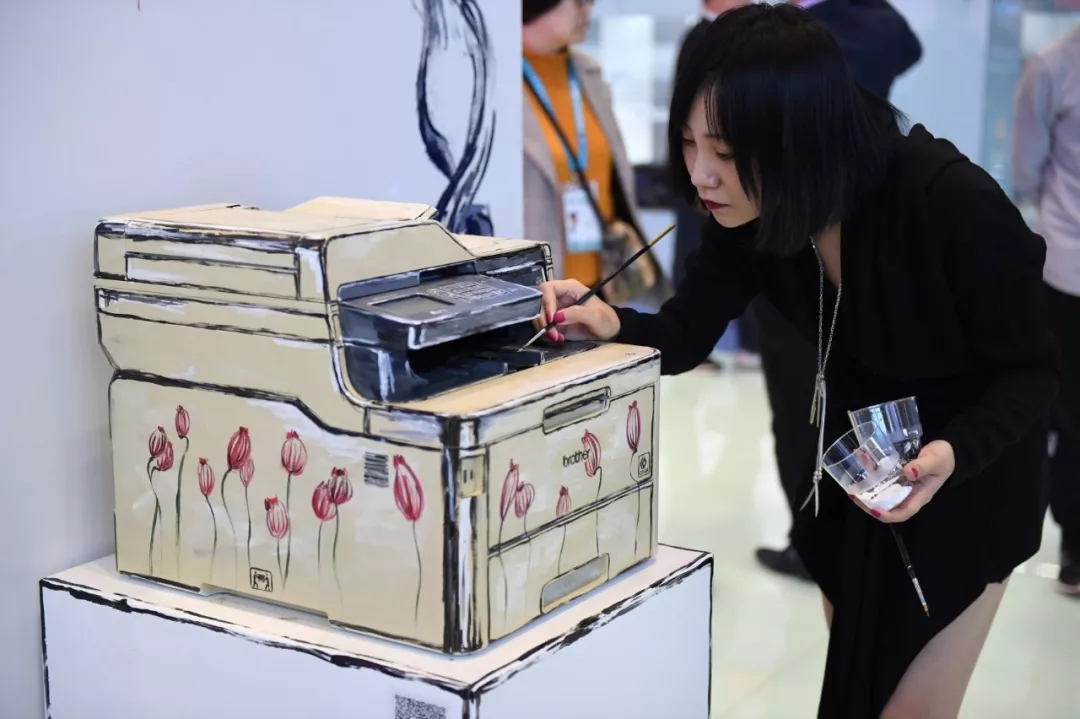· 艺术家 万雨尘 在Brother展位即兴创作,一台立体的打印机在万雨尘的妙手之下秒变2D扁平风,给全场带来特别的视觉体验;