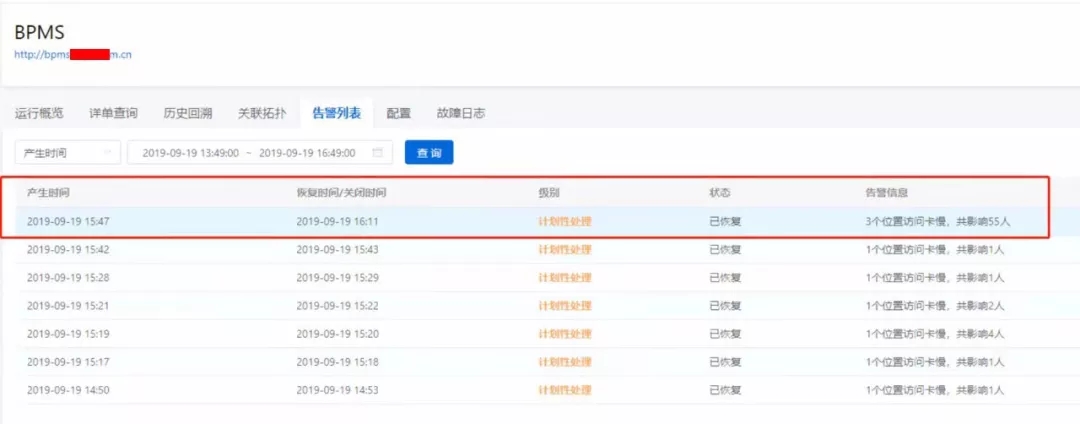 :运维人员通过猎豹的历史回溯分析,找到本起故障的主要原因——服务器拒绝用户的访问请求,导致用户无法访问BPMS系统。最终经排查原来是由于数据库性能下降导致的。