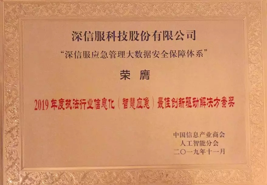 “深信服应急管理大数据安全保障体系”荣获2019年度执法行业信息化(智慧应急)最佳创新驱动解决方案奖,既是行业权威专家对深信服应急安全保障体系的重要认可,也是深信服产品及方案创新实力的证明。