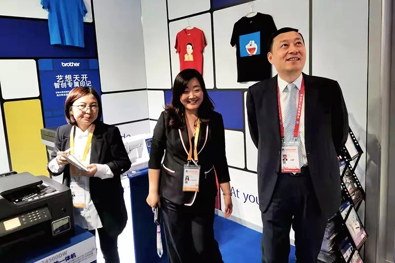 同时,来自集团的常务执行董事 只雄一先生也百忙之中抽出时间,从名古屋飞来现场支持此次进博会。上海市交通委党组书记、主任谢峰,长宁区区委书记王为人,东浩兰生集团党委书记、董事长王强…十数位各级别领导也陆续来到Brother展厅莅临指导。