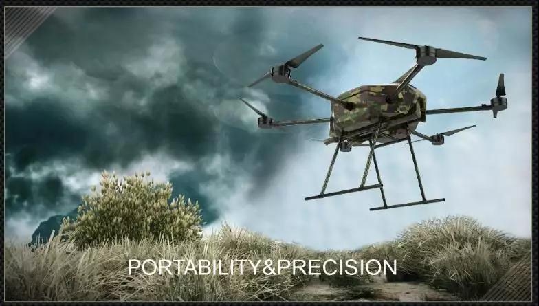 轻准科技研发的察打一体武装无人机,是中国首款能够连续向前发射15发炮弹的多旋翼无人机。同时具备侦察、救援功能,能够对敌目标进行低空凝视侦察及精准打击的作战需求。满足警用反恐、公共安全及军队步兵协同作战功能用途。