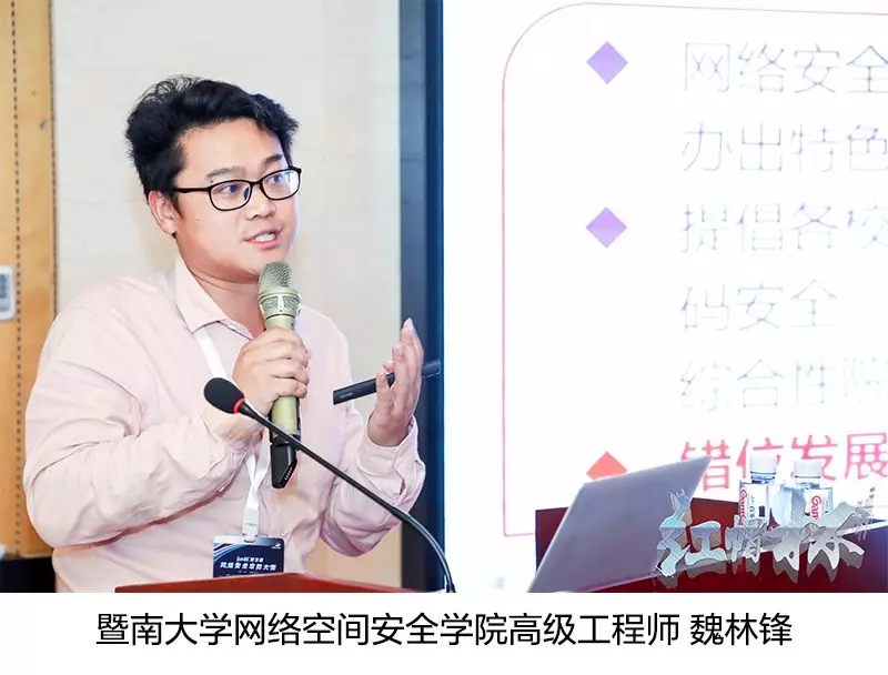 随后,广东电网有限责任公司数字化部副主任黄敬志、平安银行股份有限公司总行安全管理团队经理谢涛、深信服安全服务CTO李焕波、暨南大学网络空间安全学院高级工程师魏林锋相继发表主题演讲。