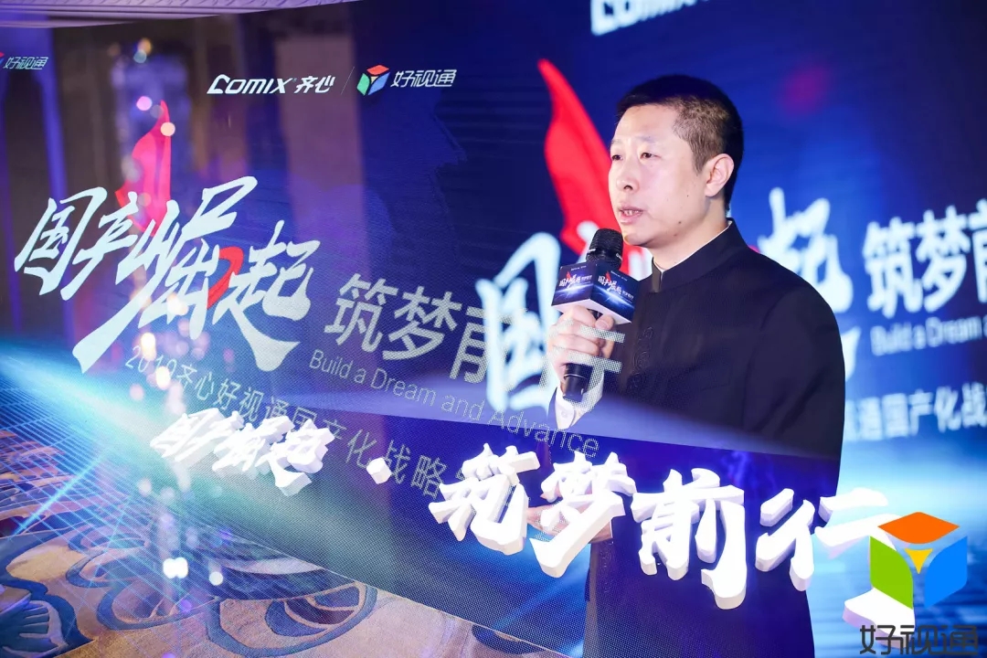 侯刚表示,齐心好视通自2009年成立以来,一直专注于云视频会议产品的研发与创新,用云+端的模式为用户提供了更高效、更便捷的视频协作体验。在国家政策大力支持,核心技术不断突破提升的情况下,国产化替代在关键行业的呼声越来越高。据分析预计,我国视频会议市场规模在2020年将达到590亿,在视频会议深度应用的行业中,党政军占比高达32%,因此无论是从市场规模还是政务刚需,云视频会议国产化都势在必行且肩负使命。这也是齐心好视通和众多核心国产芯片、国产操作系统厂商开展深入合作的重要推动力。