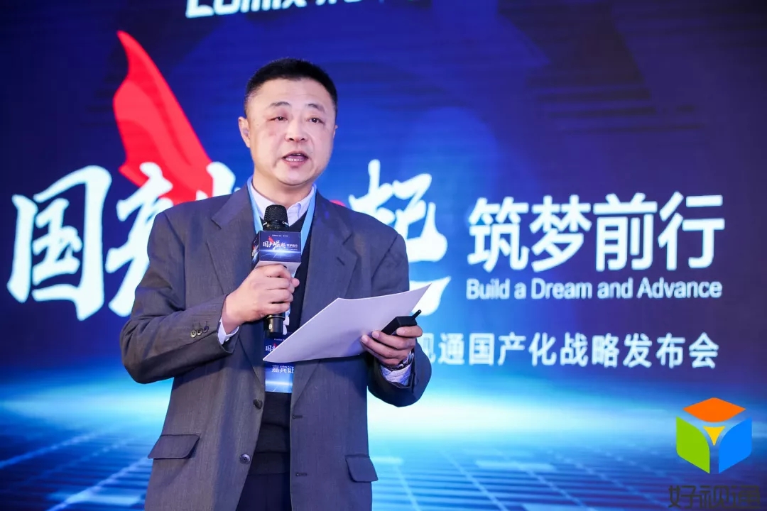 在此次大会重头戏的新品及战略发布环节,齐心好视通CEO侯刚向大家详细介绍了齐心好视通在云视频会议国产化的一系列战略部署,并发布了基于国产芯片、国产操作系统、国密算法的国产化MCU服务器以及麒麟云会议客户端。