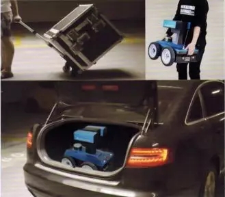 3.小型化设计:体积进一步小型化, 仅为普通巡检机器人的1/4,可放入私家车后备箱。