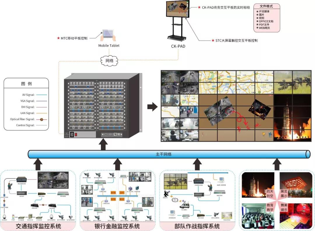 CK-C10综合平台拥有独特虚拟屏技术,可以针对单个显示设备无法接受的超大分辨率信号,如:4096*2304、8192*3072等4K以上的GIS、GPS大分辨率信号实时输入输出显示。真正意义上做到了大屏幕画面清晰度最大化的市场需求。