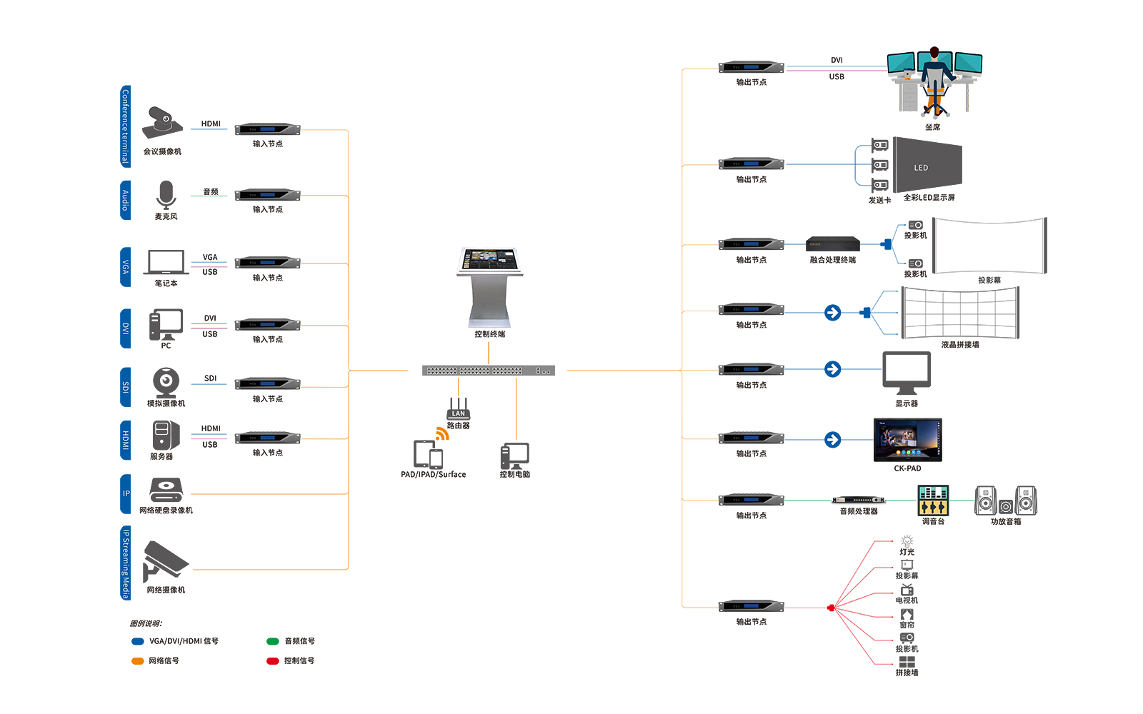 支持VGA、DVI、HDMI、SDI、HDMI1.4、音频等全部格式视频接入采集,满足不同应用场景需求。