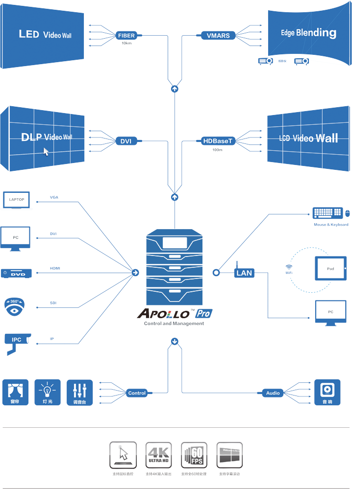 支持输出帧同步,可保证所有输出图像同步,支持液晶、LED、DLP等多种类型显示单元的图像帧同步处理,