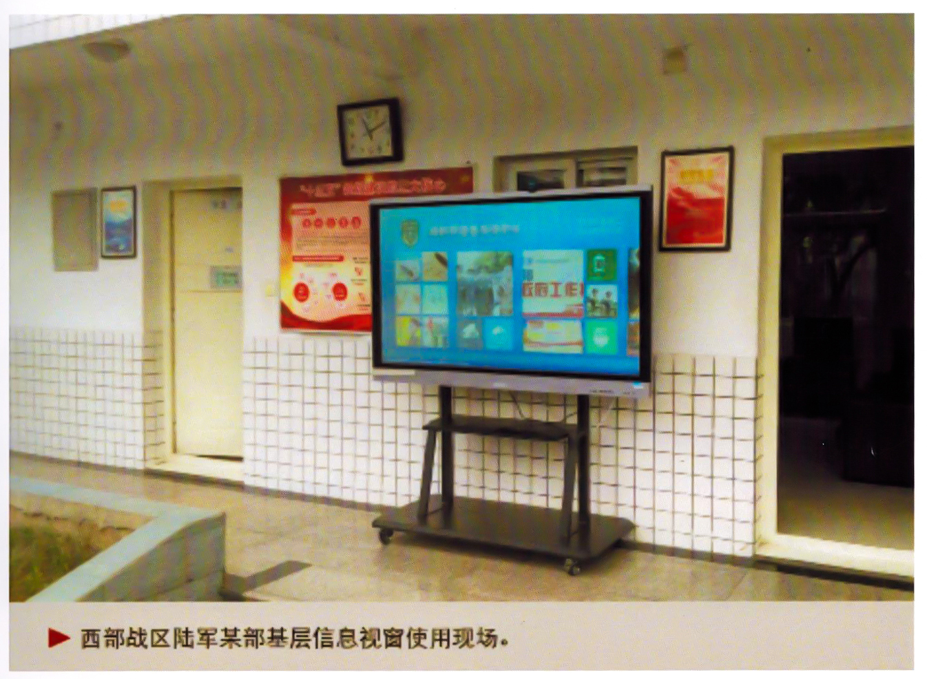 军队基层信息视窗解决方案,是华鑫杰瑞公司根据基层实际情况共同定制开发的,基于交互智能平板与基层信息视窗系统相结合的一套新型的军队文化及信息交互式展示方案。其以电子交互式展示形式为军队文化信息化提供了创新的传播手段,并且可通过网络后台对信息展示终端进行便捷管理,改革了传统低效的宣传方式,提高了信息传递效率,增强军队的文化宣传,进一步推动了军队文化信息化建设。基层信息视窗是工业时代向信息时代转变的产物,是基层部队通向网络信息时代的窗口。